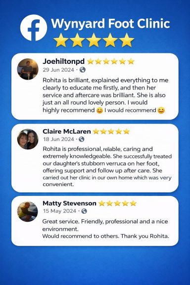 We’re proud to have built a reputation for excellent care at Wynyard Foot Clinic. With over 50 five-star reviews across Facebook and Google, our patients consistently trust us for professional, friendly, and effective treatment.